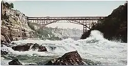 This part lists all the former bridges which succeeded one another on the Niagara River between the towns of Niagara Falls, Ontario, and Queenston in Canada and Niagara Falls, New York, and Lewiston, in United States. The Whirlpool Rapids Bridge (1897), the Rainbow Bridge (1941) and the Lewiston–Queenston Bridge (1962), still in service are listed in the Major road and railway bridges part above.