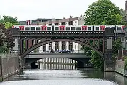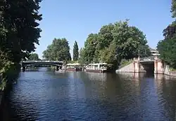 Bridges across the Este in Hamburg; only 2 km (1.2 mi) of the Este's total of 62 km (39 mi) lie within the state borders of Hamburg.