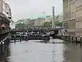 Bridges across harbor basins and canals in Harburg; the port of Harburg is indirectly fed through the Seeve.