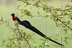 Interspecific brood parasitism evolved twice independently in the order Passeriformes, in the cowbirds (genus Molothrus) and in the family Viduidae.[1] Instead of making nests of their own, and feeding their young, brood parasites deposit their eggs in the nests of other birds.[2]