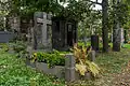 Despite this the cemetery was not considered to have any particular artistic or historical value during the Soviet period. It was closed in 1927 and sporadic efforts were made during the 1930s and 1940s to eliminate it, with the graves of several prominent figures were transferred to the Lazarevskoe, Tikhvin and Volkovo cemeteries; including Vera Komissarzhevskaya, Ivan Goncharov, Anton Rubinstein and Boris Kustodiev.[1][2] Other graves were lost or destroyed.[3] The Church of St Nicholas was closed in 1932, and the cemetery fell into neglect.[4]