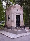The cemetery, opened in 1863, was the third cemetery in the monastery complex, after the original Lazarevskoe Cemetery in the 1710s, and the Tikhvin Cemetery in 1823.[1] It became known as the Nikolskoe after the construction of the Church of St. Nicholas between 1868 and 1871 to the design of diocesan architect Grigory Karpov.[1][2] From its inception burial there was restricted to the elite of society, the monastery's Spiritual Council noting that "the Lavra cemetery is not open to everyone, as are the city cemeteries, but only a few persons from the government service and persons with honorary titles are buried here."[2] Part of the cemetery also served as the burial site for the Monastery's monks and the metropolitans of St. Petersburg, leading to the name Bratskoe (Russian: Братское), or "Brotherhood" section.[3] Wealthy patrons commissioned large chapels and crypts, with elaborate decorations and reliefs from prominent artists such as Nikolay Laveretsky, Ivan Podozerov, Robert Bach and Ivan Schroeder.[1]