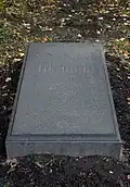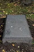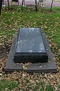 The organisers were faced with the problem that despite designating the cemetery to be the artists' necropolis, historically the Tikhvin had primarily been the burial ground of statesmen, military leaders, scientists, and composers.[4] There were relatively few graves of writers, who had tended to prefer the Smolensky Cemetery; or artists, who had traditionally chosen the Nikolskoe or Novodevichy Cemetery.[4] This necessitated the transfer of a large number of burials and monuments, which took place in two main periods, from 1936 to 1941 and from 1948 to 1952.[4] There were also several burials of prominent Soviet citizens, as the cemetery gained the status of an urban pantheon.[2] Those buried here included the scientist Sergey Lebedev in 1934, artist Mikhail Avilov in 1954, and actor Nikolay Cherkasov in 1966. In 1972 the remains of the composer Alexander Glazunov were transferred from Paris.[2] In 1968 Fyodor Dostoevsky's wife Anna Dostoevskaya was reburied next to her husband, while theatre director Georgy Tovstonogov was interred in the cemetery in 1989. So far Tovstonogov's has been the last burial to take place in the cemetery.[2][4]