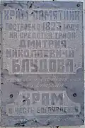 The cemetery opened in 1823 to relieve overcrowding in the monastery's Lazarevskoe Cemetery. Initially called the "New Lazarevsky" (Russian: Ново-Лазаревским), it quickly expanded to cover a large area. Its cemetery church was consecrated in 1871 in the name of the icon of the Tikhvin Mother of God, from which the cemetery took its name.[1][2][3] Burials initially took place in the eastern part of the cemetery, and in 1826 the writer Nikolay Karamzin was buried in the cemetery, followed in 1833 by Nikolay Gnedich, a contemporary of Alexander Pushkin's.[4][5][6] From then on a number of figures associated with the arts' world were buried there, including Pushkin's contemporaries Ivan Krylov, Pyotr Vyazemsky, Pyotr Pletnyov, and Alexey Olenin.[4][7] In 1844 another contemporary poet of Pushkin's, Yevgeny Baratynsky, was buried in the cemetery.[8]