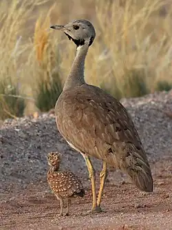 Bustards are birds in the family Otididae in the monotypic order Otidiformes. There are currently 26 extant species of bustards recognised by the International Ornithologists' Union.[1] Many species of fossil bustards are known from the Miocene onwards; however, their exact number and taxonomy are unsettled due to ongoing discoveries.[2]