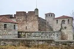 Baba Vida is a medieval castle in Vidin to the north-west of Bulgaria. It consists of two concentric curtain walls and about nine towers of which three are preserved to their full medieval height, including the original battlements. Baba Vida is situated at an altitude of 39 m. The castle was among Bulgaria's most important strongholds in the Middle Ages and served as a capital of the Second Bulgarian Empire and the Tsardom of Bdin (Vidin) before it was seized by the Ottoman Turks in 1422. | ![]() | |