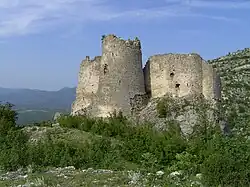 | Potravlje Fortress | Svilaja, Split-Dalmatia County | Fortress | 14th century[3] | Potravlje Fortress (or Travnik) is fortress on the mountain Svilaja in Potravlje village. The medieval fortress was first mentioned in 1372 as part of the estate of the noble Nelipić family. The fortress has a triangular ground plan with very well-preserved ramparts and a prominent semicircular tower on the southeast corner, which is partly based on the ramparts and tower of an earlier fortification. There was also an entrance with stairs on the south side. | |