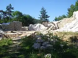 The settlement is surrounded by massive drywall and like most other Istrian hill fort settlements is placed on a flattened peak of the hilltop. Monkodonja is an example of prehistoric hillfort settlement architecture. |