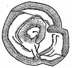 Wimble Toot is generally interpreted as a typical Bronze Age barrow.[84] An alternative interpretation is that it was possibly a motte built between 1067 and 1069.[85] Today the site forms a circular earthwork, 27.47 m across and 2.74 m high, with a ditch on the north-west and south-east sides, on the top of a ridge that overlooks a brook that runs into the River Cary, and the old Roman road of the Fosse Way.[84] |