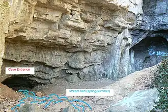 • Goat - Located at the northwest side of Patterson Street, this cave developed in a narrow bed of folded limestone within the Wills Creek Formation. The cave has a very low ceiling, less than 4 feet (1 m).[3]