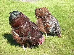 Called 'speckled' in the Sussex, 'jubilee' in the Orpington. |