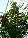 Citrus myrtifolia | Citrus myrtifolia, the myrtle-leaved orange tree, is a species of Citrus with foliage similar to that of the common myrtle. It is a compact tree with small leaves and no thorns which grows to a height of 3 m (10 ft) and can be found in Malta, Libya, the south of France, and Italy (primarily in Liguria, typically Savona, and also in Tuscany, Sicily, and Calabria). It is an essential flavoring agent of most Italian amari, of the popular Campari apéritif, and of several brands of carbonated soft drinks that are generically called "chinotto". |