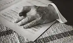 The largest and most comprehensive collection of Sibelius's manuscripts is owned by the National Library of Finland at the University of Helsinki. The institution began in earnest its mission to acquire the composer's literary estate in 1970, with the purchase—from the London auction house Sotheby's—of manuscripts that had once belonged to A. E. Lindgren and, thereafter, R. E. Westerlund.[33] The National Library's holdings ballooned (and the need for a supplemental catalogue became especially acute), however, in 1982, when the Sibelius family donated all papers still in its possession.[33] The gift more than doubled Sibelius's catalogue: among the nearly 2,000 manuscripts were not only drafts, thematic sketches, and page proofs related to known compositions, but also hitherto unknown juvenilia.[34]