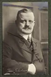 Sibelius sold his music to several publishers over the course of his career. As a relatively unknown composer in the 1890s and early 1900s, he worked with domestic firms in Helsinki, including the eponymous operations of Axel E. Lindgren and Karl F. Wasenius, as well as Helsingfors Nya Musikhandel, a joint venture of Konrad G. Fazer and Robert E. Westerlund until the latter withdrew in 1904 to begin his own firm.[24][j] As Sibelius's international reputation grew, the major German firms came calling, and he relished not only the prestige but also the opportunity to free himself from the cumbersome domestic publishing process. He contracted with Berlin's Robert Lienau Musikverlag from 1905 to 1909 and with Leipzig's Breitkopf & Härtel from 1910 to 1918.[25] The arrival of the First World War in 1914, however, disrupted business with Germany, and Sibelius's royalty payments had to be rerouted through neutral Denmark. Ever in debt, Sibelius churned out undistinguished, "bread-and-butter" violin duos and piano pieces for R. E. Westerlund and A. E. Lindgren,[26] each of whom lacked the means to print the works but viewed them as shrewd investments.[27][k]