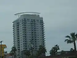 Regency Towers is located at 3111 Bel Air Drive, at the Las Vegas Country Club in Winchester, Nevada.[126] Regency Towers was built in 1974, and was the first high-rise condominium property to open in the Las Vegas Valley,[1] standing 28 stories[127] with 226 units.[2] Only eight of the units sold after opening, before the property went into foreclosure. Irwin Molasky, who was among the eight buyers, later purchased the entire structure and renovated it before ultimately selling the remaining units.[2] Regency Towers was designed by Las Vegas architect Homer A. Rissman, who also lived at the property for years.[128] In March 2001, approximately 80 residents were evacuated after the explosion of a meth lab operated by a resident inside one of the condominiums.[127][129] In March 2007, six weeks of filming began at Regency Towers for the second season of the television series HGTV Design Star. The season was shot inside the penthouse formerly owned by Molasky.[130][131]
