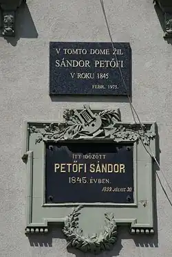 | Memorial plaque | 606-517/0 | Vajanský street 5 = 48°19′36.88″N 19°40′7.5″E / 48.3269111°N 19.668750°E | Memorial plaque for Hungarian poet Sándor Petőfi | |