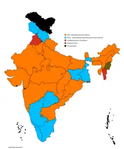 - ^ Only the chief minister's party is indicated. He/she may head a complex coalition of several parties and independents; those parties are not listed here.