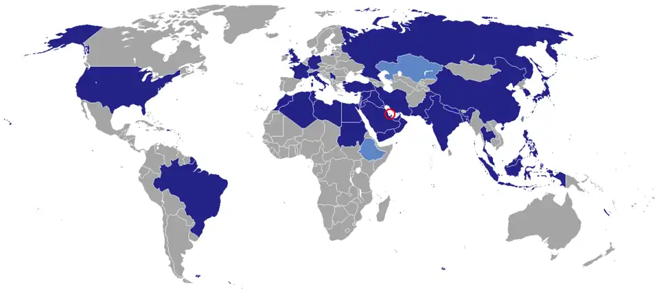 - ^ a b c d e f g h i j k l m n o p q r s t u v w x y z aa ab ac ad ae af ag ah ai aj ak al am an ao ap aq ar as at au av aw ax ay az ba bb bc bd be bf bg bh bi bj bk bl bm bn bo bp bq br bs bt bu bv bw bx by bz ca cb cc cd ce "Foreign Missions & Accredited Organizations". Ministry of Foreign Affairs of Bahrain. Retrieved 7 July 2025.