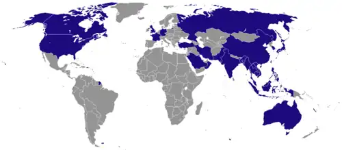 - ^ "الدول التي لا يوجد فيها تمثيل دبلوماسي" [Countries without diplomatic representation]. Ministry of Foreign Affairs and Expatriates of Syria (in Arabic). Retrieved 10 October 2024.