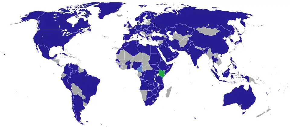 - ^ a b c d e f g h i j k l m n o p q r s t u v w x y z aa ab ac ad ae af ag ah ai aj ak al am an ao ap aq ar as at au av aw ax ay az ba bb bc bd be bf bg bh bi bj bk bl bm bn bo bp bq br bs bt bu bv bw bx by bz ca cb cc cd ce cf cg ch ci cj ck cl cm cn co cp cq cr cs ct cu cv cw cx cy cz da db dc dd de df dg dh di dj dk dl dm dn do dp dq dr ds dt du dv dw dx dy dz ea eb ec ed ee ef eg "Directory of Diplomatic Corps and International Organizations 2024/2025" (PDF). Ministry of Foreign and Diaspora Affairs (Kenya). May 2025. Retrieved 12 August 2025.