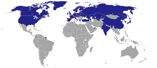 This article lists diplomatic missions resident in Latvia. At present, the capital city of Riga hosts 38 embassies. Several other countries have ambassadors accredited to Latvia, with most being resident in Stockholm, Moscow, Warsaw or other Nordic capitals.[1]