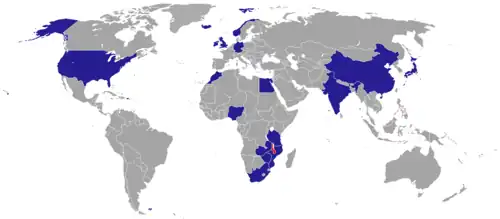 - ^ a b c d e f g h i j k l m n o p q r s t u "HEADS OF DIPLOMATIC MISSIONS RESIDENT IN MALAWI IN ORDER OF PRECEDENCE: AS AT 07 JUNE, 2024" (PDF). Ministry of Foreign Affairs of Malawi. Retrieved 21 August 2024.