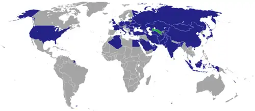 - ^ a b c d e f g h i j k l m n o p q r s t u v w x y z aa ab ac ad ae af ag ah ai aj ak al am an ao ap aq ar as at "Embassies in the Republic of Uzbekistan". Ministry of Foreign Affairs of Usbekistan. Retrieved 18 September 2024.