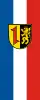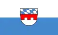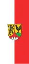A white-blue horizontal bicolor with the coat of arms. The dexter represents Baden. The yellow also represents Baden and the white and blue is said to have come from the House of Wittelsbach.