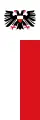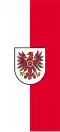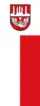 A white-red horizontal bicolour flag with the coat of arms. The eagle alludes to the coat of arms of Frederick William I of Prussia while the wheel represents the Elector of Mainz.