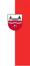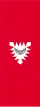 A white flag two rows of blue lozenges on the left and right with the coat of arms.