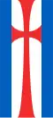 A red-white-red flag with a cross. The cross represents the introduction of Christianity to Wagria by Vicelinus. The cross is composed of four brick towers representing the churches that Vicelinus built, four leaves of a water lily representing the von Segeberg family and a nasselblatt represents the counts of Schauenburg and Holstein. Designed by George Fink.[42]