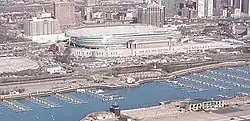 Soldier Field (far left) and the adjacent Century of Progress World's Exposition in 1933