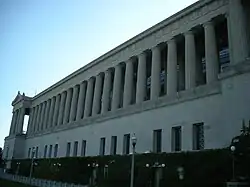 September 6: opening day on Saturday for the first dedicatory event at the "Grant Park Stadium" an athletics meet with policemen as participants. This event was a fundraiser for the Chicago Police Benevolent Association, which provided support for police widows and officers disabled in the line of action. The meet's official opening ceremony on the second day featured 1,200 police officers parading through the stadium, fireworks, and music by two police bands, among other entertainment. The contests in the event included a chariot race and a game of motorcycle polo. The opening ceremony was attended by 45,000 spectators. Events raising funds for Chicago's Policemen and Firemen Benevolent funds were a mainstay at Soldier Field until 1971.[1][10][11][12][13][7]