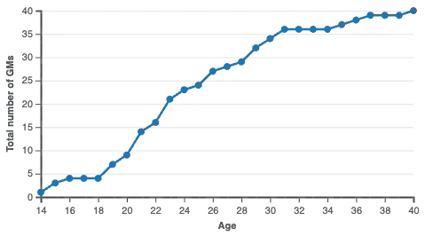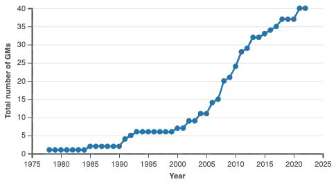 | Award year | Year FIDE awarded the player's GM title |