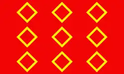 | 2009—Present | Yellow and blue flag with a flame erupting from the line joining the two fields, with a green border. | ||