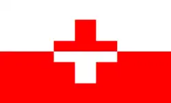 Civil ensign | Red, bordered white and charged with a white Maltese cross. Ratio 2:3. | |