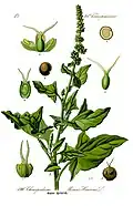 | Good-King-Henry | Chenopodium bonus-henricus | Most of Europe, West Asia and eastern North America | Young shoots (until early summer) and leaves (until August). The shoots can be cooked like asparagus, and the leaves like spinach. | [40] | ||