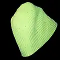 Tuque | In Canada, a knitted hat, worn in winter, usually made from wool or acrylic. Also known as a woolly hat, ski cap, knit hat, knit cap, sock cap, stocking cap, or watch cap. Sometimes called a toboggan or goobalini in parts of the USA. In New Zealand, Australia, the United States and the United Kingdom, the term "Stocking Cap" is applied to this cap. | |