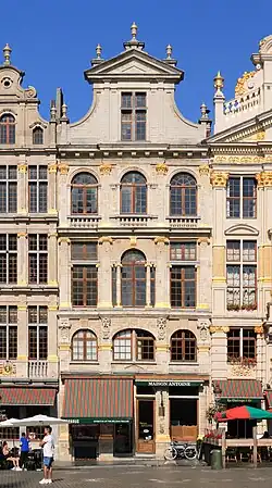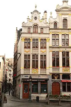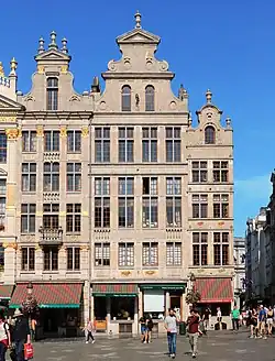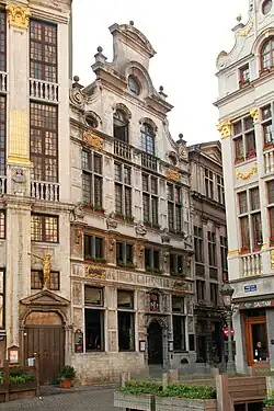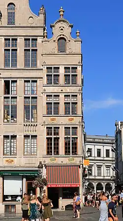 Private houses | Two private houses under a single façade. The gable, destroyed in the 19th century, was completely reconstructed in 1896–1899 by Adolphe Samyn after a watercolour by Ferdinand-Joseph De Rons from 1729.[15] |