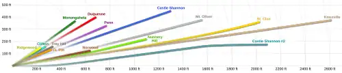 | Ridgewood Incline | 1886 | 1887 | Perry Hilltop: North Charles Street near Nublock Street | Perry Hilltop: Yale Street near Ridgewood Street | Ridgewood Incline Plane Company | |