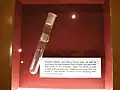 A test tube purporting to hold Thomas Edison's last breath is in The Henry Ford museum near Detroit. Henry Ford reportedly convinced Edison's son Charles to seal a test tube of air in the inventor's room shortly after his death, as a memento.[45] Charles wrote in 1953 that there were eight empty test tubes in the room near Edison when he was dying. He had the physician seal them with paraffin. The director of the Edison and Ford Winter Estates indicated in 1999 that they held 42 test tubes all supposedly holding Edison's last breath.[46][47] | ||