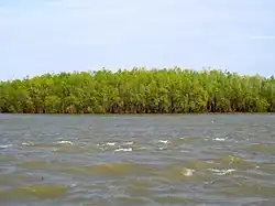 – | 0 | Two large landmasses and several smaller islands between the various arms and channels of the delta –