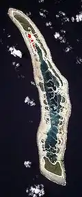 0.02 ha | The smallest of the permanent islets of Caroline Atoll (13 m by 18 m) surveyed in 1988, Atibu is reported to have disappeared entirely following a February 1990 storm. | ||
