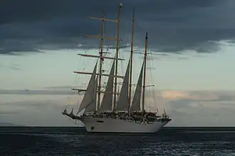 | Star Flyer | 1991 | S | Scheepswerven van Langerbrugge | 366 ft (112 m) | 49.8 ft (15.2 m) | 4-mast barquentine | Steel | 36,000 ft2 | 2,298 GT | cruise ship | ||