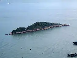 As of 2017, five lighthouse structures in Hong Kong that date from before the Second World War remain in operation: Cape D'Aguilar, Green Island (two lighthouses), Waglan, and Tang Lung Chau. All of them are listed heritage sites.[38] Lei Yue Mun Lighthouse has also been in continuous operation since 1902, but the structure was rebuilt in the 1950s.[40] In addition, Gap Island Lighthouse (also known as Mosquito Island, or Man Mei Chau from Cantonese 蚊尾洲, pronounced Wenwei Zhou in Mandarin), situated on an island due south from Hong Kong, was built in 1892 in collaboration between the British Hong Kong and Qing Empire governments; this lighthouse is now under Guangdong administration and is fully-automated using solar power.[38][41]