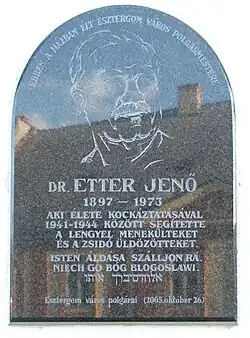 Plaque of Jenő Etter in Víziváros