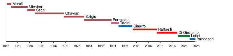 | 1 | Comunardo Morelli | 1946 | 1948 | Italian Communist Party |