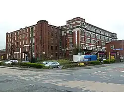 From the Industrial Revolution until the 20th century, Bolton was a major centre of textile manufacture, particularly cotton spinning. During this period, Bolton was dominated by large rectangular brick-built factories, many of which still remain today as warehouses or converted for residential or retail use. In 1929 there were 247 cotton mills in the borough and in 2009 a study revealed that 108 had survived in some form.[1] The others had been totally demolished and their sites used for other purposes.