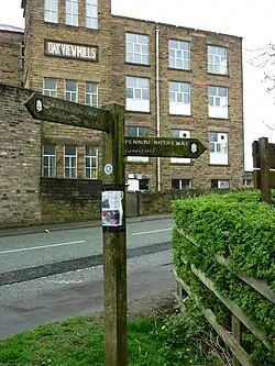 Since that time it has remained empty and its future is uncertain. The old Delph branch line (locally known as The Delph Donkey) once ran along the front of the mill in the picture with the last passenger train running on Saturday 30 April 1955. The old track bed is now a popular recreational route to Dobcross and Uppermill. Although the railway infrastructure has mostly been removed, the architecture of the bridges, walls and buttresses remains. Gutted by fire and collapsed on 14 June 2016.[4][5] |