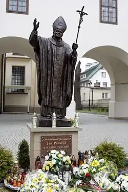 - The monument Open the Doors to Christ, commemorating the 27-year pontificate of Pope John Paul II, was unveiled on 2 April 2006 in front of Brzozów's collegiate church on Adam Mickiewicz Street. It was consecrated by Father Stanisław Mac from Rzeszów, assisted by parish priest Franciszek Rząsa and Father Tomasz Zięba, following a Mass.[12]